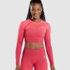 flexibel in de flex crop top met lange mouwen. gemaakt met naadloze, zweetafvoerende stof die zelfs tijdens je zwaarste training met je meebeweegt. het lichaamscontourende silhouet, de uitsnijding en het opvallende logo geven je een basisstuk dat perfect is om je eigen look te creëren.