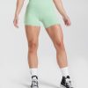 Gymshark heatseal-logo aan de linkerkant van de tailleband tijdens het dragen